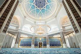 La sala de oración principal con capacidad para más de 30 mil personas y está decorada con enormes candelabros y alfombras ornamentales kazajas que cubren un área de más de 15.525 metros cuadrados.
